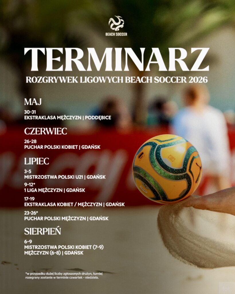 Polski Związek Piłki Nożnej ogłosił rozpoczęcie zapisów do rozgrywek piłki nożnej plażowej na sezon 2026. Kluby mogą już zgłaszać swoje drużyny do udziału w poszczególnych ligach i turniejach.