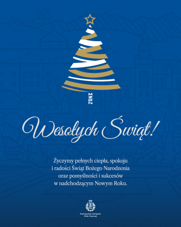 Z okazji Świąt Bożego Narodzenia pragniemy złożyć całej piłkarskiej społeczności Małopolski najserdeczniejsze życzenia zdrowia, spokoju i radości. Niech ten wyjątkowy czas będzie okazją do odpoczynku, refleksji oraz spotkań w gronie najbliższych. Życzymy, aby nadchodzący Nowy Rok przyniósł wiele sportowych sukcesów, satysfakcji z podejmowanych wyzwań oraz niegasnącej pasji do piłki…