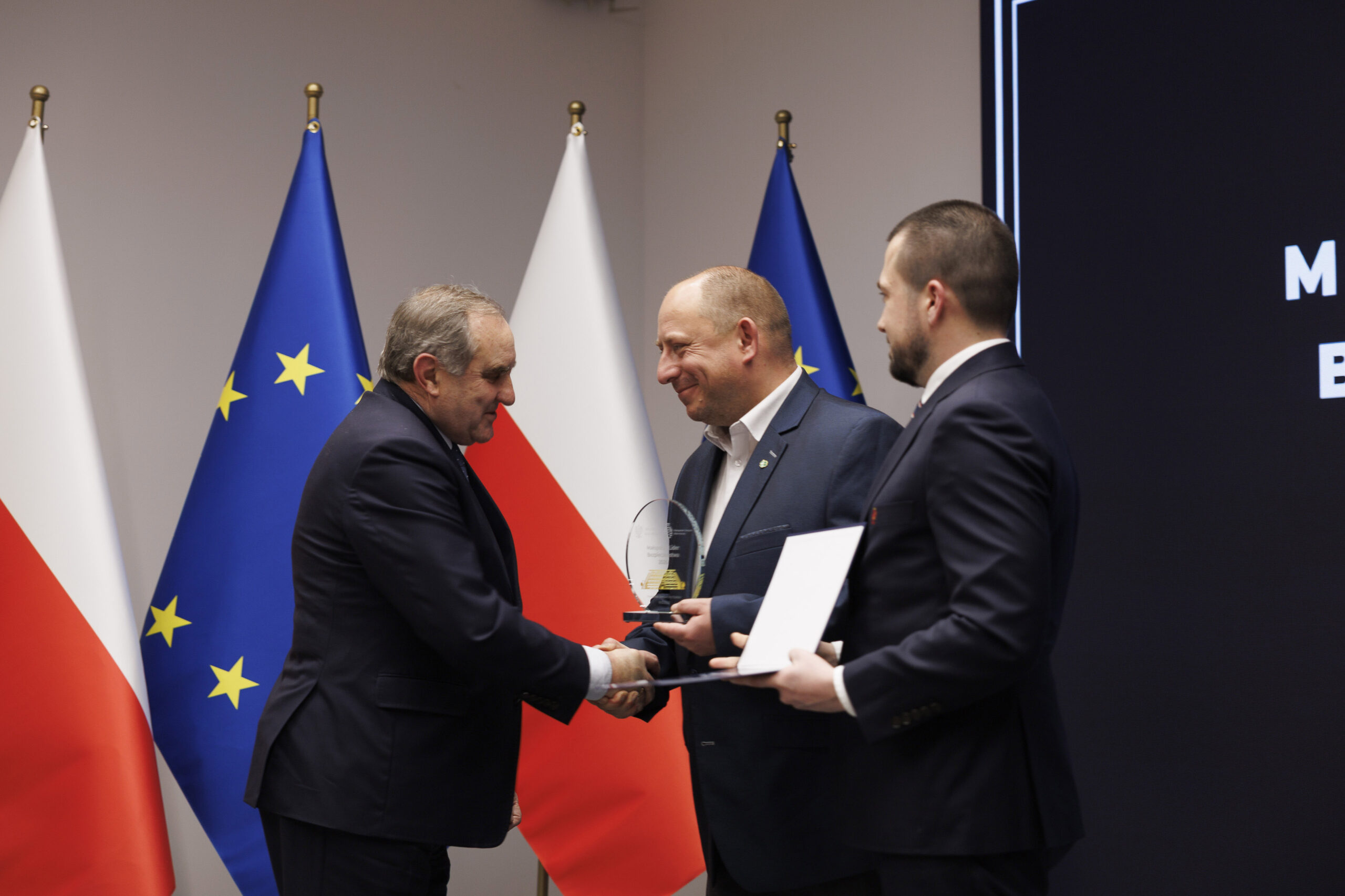 Gmina Olkusz – za budowę nowoczesnego stadionu piłkarsko-lekkoatletycznego z pełnym zapleczem infrastrukturalnym, obejmującym monitoring, system kontroli dostępu i rozwiązania zapewniające bezpieczną ewakuację. Nagrodę odebrał Roman Piaśnik – burmistrz Miasta i Gminy Olkusz.