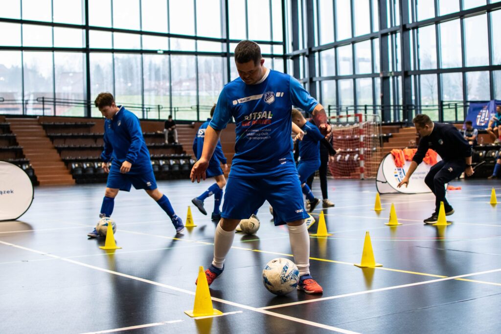 Uczestnicy festiwalu mieli możliwość obserwowania treningów pokazowych w różnych dyscyplinach piłkarskich dedykowanych osobom z niepełnosprawnościami, a także udziału w grach towarzyskich pod okiem trenerów.