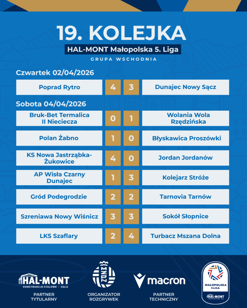 Podsumowanie 19. kolejki HAL-MONT Małopolskiej 5. Ligi