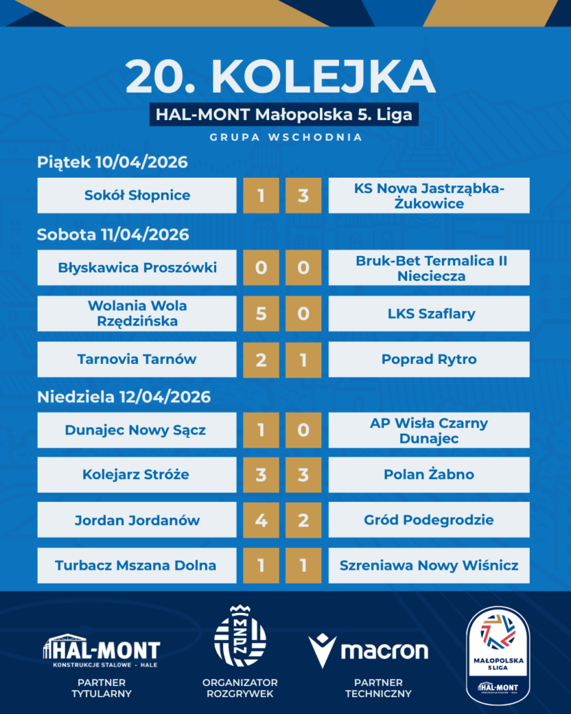 Okrągła, dwudziesta seria gier w HAL-MONT Małopolskiej 5. Lidze już za nami! Sprawdźcie wyniki z ostatniego weekendu i jak zmieniły się ligowe tabele po kolejnej kwietniowej kolejce.