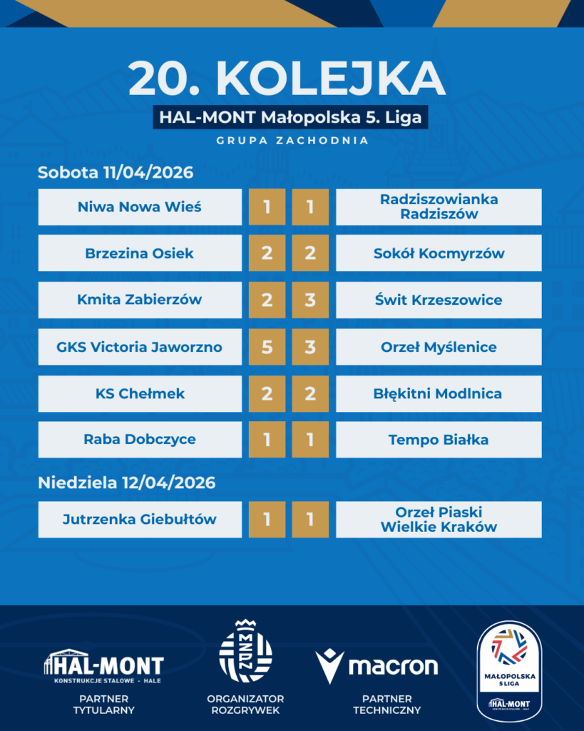 Podsumowanie 20. kolejki HAL-MONT Małopolskiej 5. Ligi