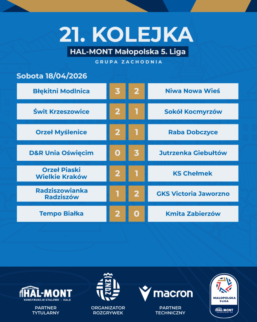 Podsumowanie 21. kolejki HAL-MONT Małopolskiej 5. Ligi