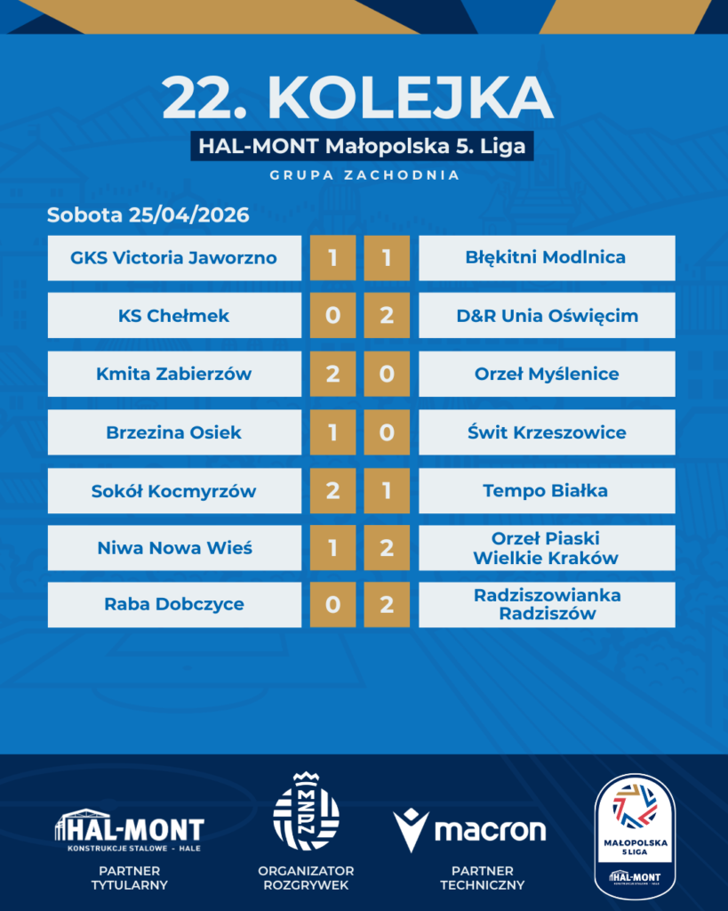 Podsumowanie 22. kolejki HAL-MONT Małopolskiej 5. Ligi