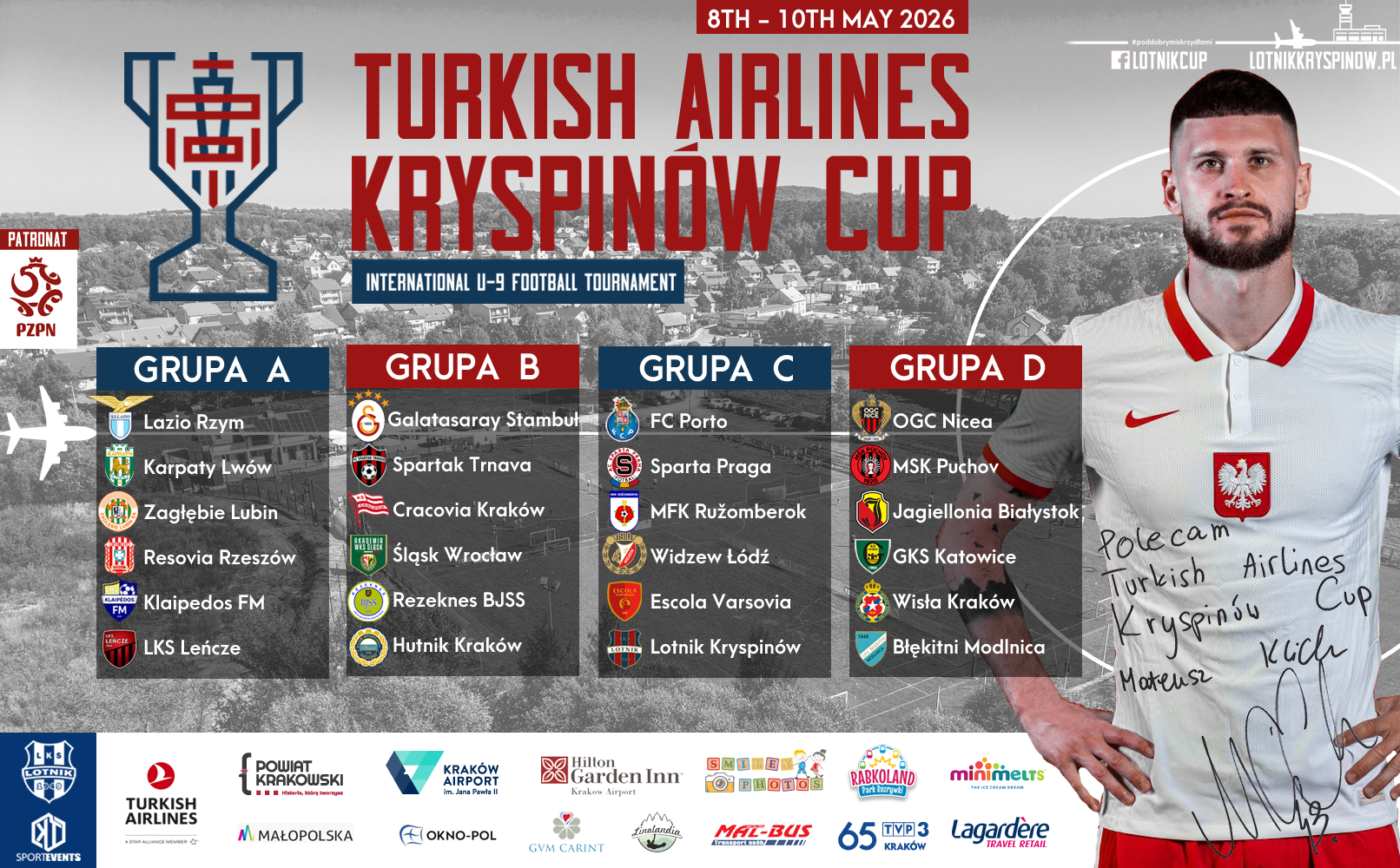 Turkish Airlines Kryspinów Cup to jeden z najmocniej obsadzonych turniejów piłkarskich 9-latków w Polsce. Do Kryspinowa zjadą 24 zespoły z 10 krajów, w tym takie zespoły jak: FC Porto, Galatasaray Stambuł, Lazio Rzym, Sparta Praga czy OGC Nice.